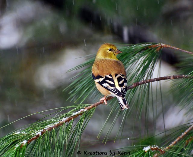 (Goldfinch on a snowy branch)
