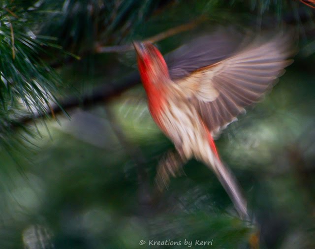 I really like to capture movement in the birds. This little house finch cooperated nicely.