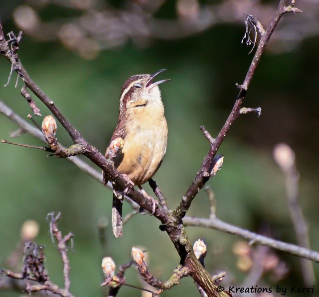Taken thru my dining room window looking out into my backyard. I LOVE to watch the birds sing. They throw their head back, close their eyes, and belt it out! And the Carolina Wren has QUITE a Song! It was his nature to blossom into song, as it is a tree's to leaf itself in April. ~Alexander Smith