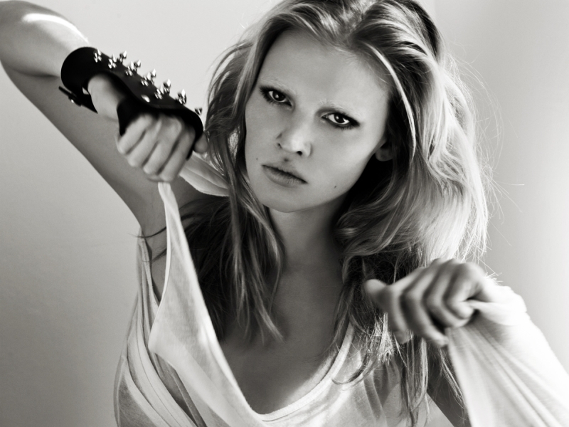 Lara Stone (born December 23, 1983 in Berlin, Germany) is a Dutch model. Stone entered the Elite Model Look contest in 1999, as a 15-year-old. Although she didn't win, she impressed Elite execs and was signed to the Elite Modeling Agency. After years of working as a struggling model, her career took a positive turn when she managed to get signed by IMG in 2006. Soon after, she opened the Givenchy haute couture show in Paris and she has been a fashion frontrunner ever since. She has walked shows for Louis Vuitton, Chanel, Lanvin, Miu Miu, Fendi, MaxMara, Pollini, Prada, Anna Sui, Marc Jacobs, Michael Kors, Stella McCartney, Zac Posen, Balmain, Celine, Hermès, Isabel Marant, Jean Paul Gaultier, Dolce & Gabbana, D&G, Givenchy, Karl Lagerfeld, Missoni, Emanuel Ungaro, and many others like Victoria's Secret. During the runway season of SS-2009 Lara opened the shows of Giles Deacon, Isabel Marant and Christopher Kane. She also opened the finale of the coveted Prada show that very same season in a striking gold dress and sky high heels that made numerous models fall flat on the concrete ground. In FW-2008, Lara opened the Fendi and MaxMara shows, and closed the Diesel and Stella McCartney shows. In SS-2008, Lara closed the Prada and Balmain shows, and opened the Miu Miu show. That same season she was a semi-exclusive for Prada which was strange considering Prada normally only uses new girls as exclusives. Because she was a Prada semi-exclusive, she could not walk any shows during New York fashion week, or any shows in Milan before the Prada show. After she closed Prada, she was free to walk in the Milan and Paris fashion weeks. Her history of campaigns include Calvin Klein Make-Up, Calvin Klein Jeans, H&M, Jean Paul Gaultier, Time, DKNY Jeans, Nicole Farhi, Belstaff, CK Calvin Klein, Hugo Boss Orange, De' Type, Revlon, TSUM, Just Cavalli, Max Mara, Malizia by La Perla, Sisley, Jil Sander and Givenchy (for 5 consecutive seasons). She was on the cover of Japanese Vogue in March 2005, French Elle in May 2006, French Vogue in April 2006 ,Danish Elle in August 2006, Italian Vogue in December 2007, French Vogue in March 2008 and again in February 2009. In 2008, Lara was also on the cover of The Journal, V magazine, i-D, and W alongside Kate Moss and Daria Werbowy. Editorially Stone has been equally successful, appearing frequently in W, Vogue Paris, V magazine and Vogue Italia. She has been featured on the cover of Vogue Italia in December 2007, shot by Steven Meisel and was recently on the cover of i-D with the cheeky tagline "Yes I think I'm Sexy." Stone was also photographed alongside Malgosia Bela, Daria Werbowy, Randal Moore, Mariacarla Boscono, Emanuela De Paula, and Isabeli Fontana for the 2009 Pirelli Calendar. She spent ten tiring days on the savanna in Africa to shoot the calendar. She shot in front of a fire, jumped off of elephants and climbed up trees in heels as she said in an interview on location. She is one of the 10 new models to watch, according to Vogue. She was considered the best model in 2006 by MODTV and the best model in the Fall 2007 season by FashionTV. She was featured on the Elle article "Supermodel Generation 2006", along with Jessica Stam, Gemma Ward, Hilary Rhoda and Natasha Poly. She was also number 1 in the First Faces Fall 2007 Countdowns from FashionTV. Her trademarks include the gap between her front teeth and her wobbly runway walk, which can be atrributed to her size 7 feet, smaller than the regular runway shoe which are size 8-10. The February 2009 edition of Vogue Paris featured Stone as the cover star and sole model in the entire magazine. Stone was featured on the May 2009 cover of American Vogue alongside Liya Kebede, Anna Jagodzinska, Natalia Vodianova, Caroline Trentini, Jourdan Dunn, Raquel Zimmermann, Natasha Poly, and Isabeli Fontana as one of the front-running faces in fashion today.