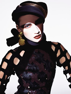 Eugenia Volodina (born September 17, 1984 in Kazan, Russia) is a Russian model. She has been featured in the editorials of magazines such as Vogue, Harper's Bazaar, Vanity Fair, ID, Numero and Elle. She has also appeared in the catalogs of Bloomingdale's, Louis Vuitton, Neiman Marcus, Kenzo, Hermes and Victoria's Secret. Volodina's résumé includes advertising campaigns for Escada, Bvlgari, Bill Blass, Versace, Valentino, Zac Posen, Salvatore Ferragamo, Fendi, Chanel eyewear, Dolce & Gabbana, Oscar de la Renta, Jean Paul Gaultier, Vitadinni, Ann Taylor, Elie Tahari, Biotherm, Thierry Mugler beauty and Céline. Volodina was planned to be the newest face of J'adore Dior instead they stayed with carmen Kass, Volodina signed with Yves Saint Laurent cosmetics that same year. Valentino chose her as the face of his fragrance Valentino V. Volodina is also the face of the underwear brand Eres. She appeared in the 2005 Pirelli Calendar alongside Julia Stegner and Adriana Lima. Volodina walked in the Victoria's Secret Fashion Show in 2002, 2003, 2005, and 2007. In 2007 she put her runway career on hold but still appears in editorials and ads.