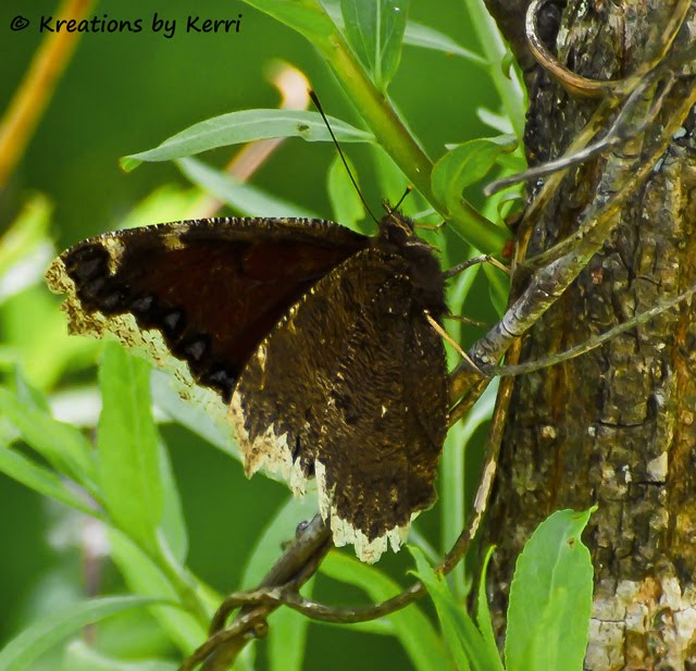 A Mourning Cloak Butterfly from last May. I am looking forward to seeing these again in a few months. Doesn't the underside look like tree bark?