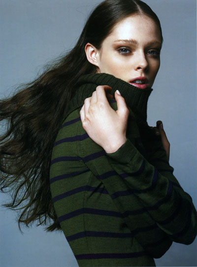 Mikhaila Rocha (born September 10, 1988), known professionally as Coco Rocha, is a Canadian fashion model. She walked for esteemed designers like Stella McCartney, Christian Lacroix, Emanuel Ungaro, Anna Sui, Jean Paul Gaultier's and was chosen by Marc Jacobs to open and close his Louis Vuitton show. In the May 2007 issue of Vogue (US), she was featured on the cover with fellow models Doutzen Kroes, Caroline Trentini, Raquel Zimmermann, Sasha Pivovarova, Agyness Deyn, Jessica Stam, Hilary Rhoda, Chanel Iman, and Lily Donaldson as the new crop of supermodels. Rocha has been on the covers of many top fashion magazines including Vogue, Flare, Fashion, Numéro, French, W, Harper's Bazaar, Dazed & Confused, i-D, Time Style & Design, among others. Since her debut, Rocha has been the face of a variety of advertising campaigns including Americana Manhasset, Balenciaga, Chanel, D&G, Dior, Dolce & Gabbana, Lanvin, The Gap, Tommy Hilfiger, Yves Saint Laurent. She is in the third place on the Top 50 Models Women list by models.com behind Lily Donaldson, Sasha Pivovarova, Natasha Poly, and Raquel Zimmermann.