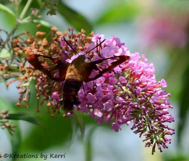 Yes, it's another Hummingbird Moth. I have seen more this summer than ever before and I will miss them when they are gone. This week has felt a bit like Fall with cooler mornings and I've even heard the Geese flyover each morning and evening.