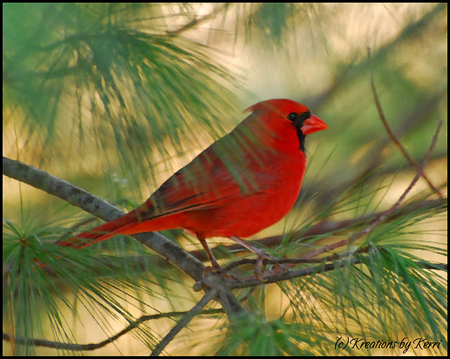 About the image: Shot from my back deck. This is a favorite hiding place for the cardinals. This image is also one of my best sellers in my Kreations by Kerri Nature Store at Cafe Press.