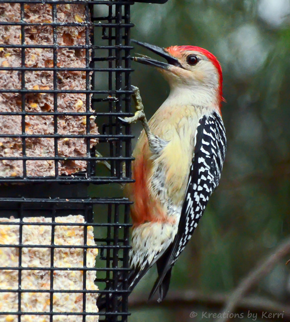 About this image: Looking thru my archives I found this Red-bellied Woodpecker - showing his Red Belly. I grew up calling his guy a "Red-headed" woodpecker .... well he does have a red head - but he isn't a Red-headed Woodpecker. If you look closely you can see his tongue too. It was a very dark day when I took this - thru the sliding glass door that leads to my deck with my ISO set on 3200. I am using a Nikon D7000 (see sidebar link) and I can't get over how well it does on a High ISO.